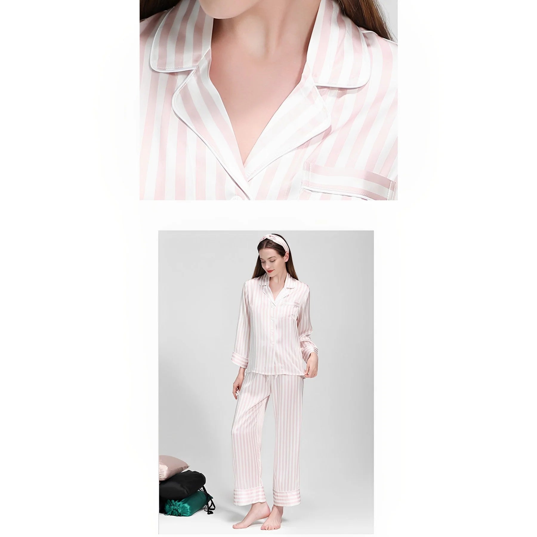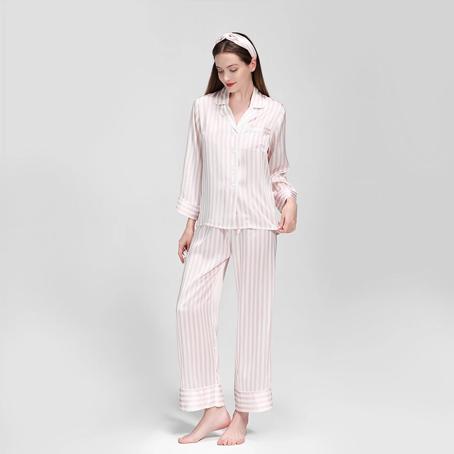 Kremer-Boutique 19 Momme Schickes Gestreiftes Seiden-Pyjama-Set