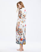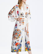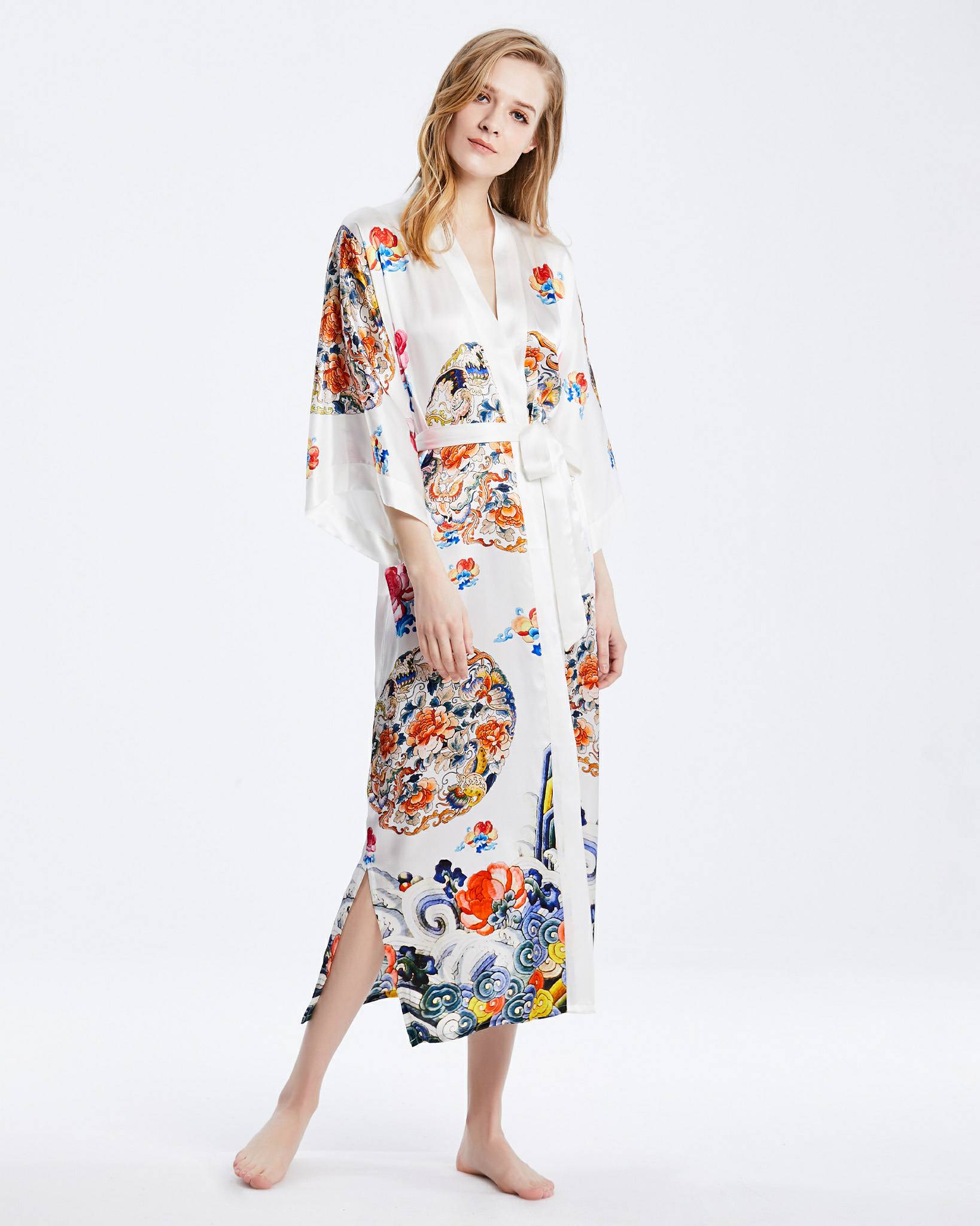 Kremer-Boutique Glücksrad Eleganter Langer Seidenkimono