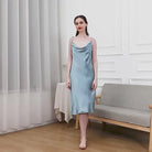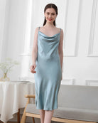 Genießen Sie ultimativen Luxus mit dem Kremer-Boutique Seidenkleid mit Wasserfallausschnitt. Dieses zeitlose Kleid verkörpert Eleganz und schmeichelt Ihrer Silhouette mit seinem weichen Fall und dem anmutigen Ausschnitt. Der raffinierte Wasserfallausschnitt verleiht eine verführerische Note – perfekt für romantische Abende, besondere Anlässe oder als unverzichtbares Statement-Piece in Ihrer Garderobe. Aus 19 Momme Maulbeerseide gefertigt, ist es atmungsaktiv, glatt und luxuriös weich auf der Haut. Verstellbare Träger und eine reguläre Passform sorgen für Komfort und mühelose Raffinesse bei jedem Tragen.